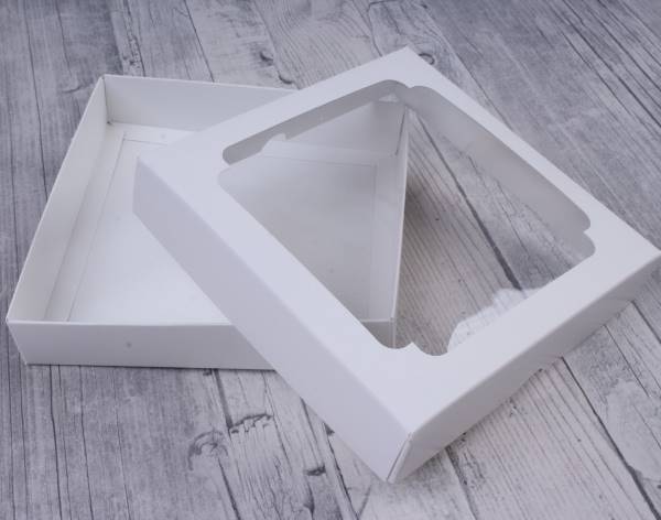 Коробка самосборная 14.5*14.5*3 см Белая с окном крышка/дно 56684 купить оптом и в розницу предлагает интернет-магазин Радуга 52. Оптовая цена действует при заказе от 3 000 ₽.