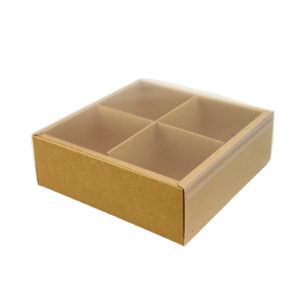 Коробка самосборная 15*15*5 см С окном крышка/дно 4 ячейки крафт 536133