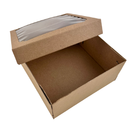 Коробка самосборная 20*20*9 см Крафт с окном крышка/дно 51739