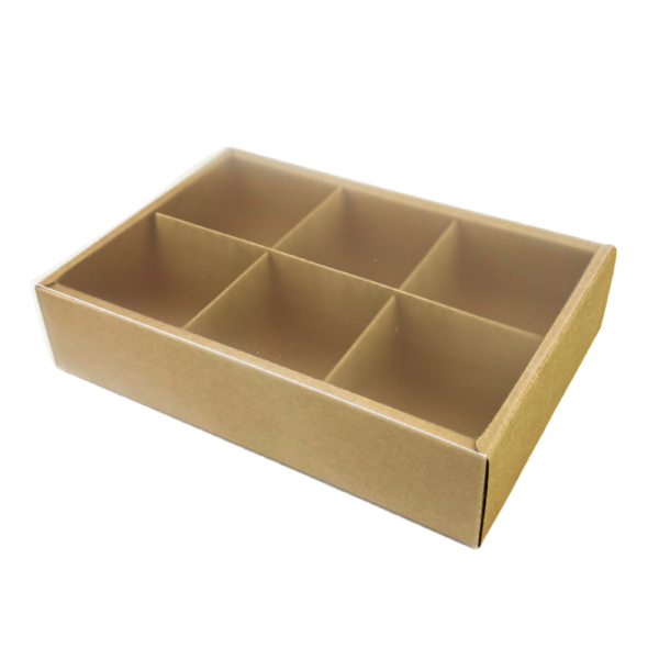 Коробка самосборная 23*15*5 см С окном крышка/дно 6 ячеек крафт 536134