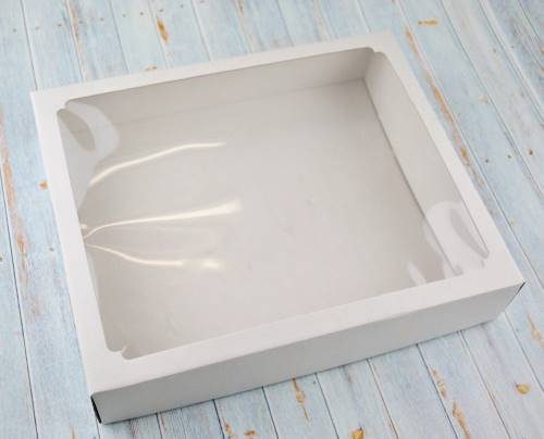 Коробка самосборная 37*32*7 см Белый с окном крышка/дно 51712 купить оптом и в розницу предлагает интернет-магазин Радуга 52. Оптовая цена действует при заказе от 3 000 ₽.