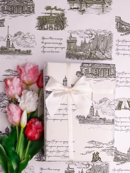 Бумага крафт упаковочная в рулоне 70 см*10 м "Россия Санкт-Петербург" черный 50 г/м2