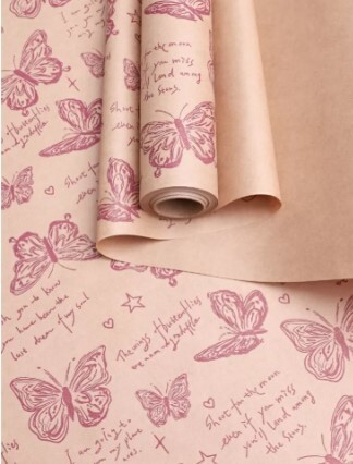 Бумага упаковочная крафт в рулоне 70 см*10 м Бабочки фиолетовый пурпур 70 г/м2