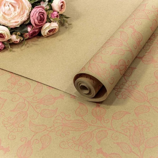 Крафт бумага в рулоне 70 см*10 м "Вьюнок полевой" розовый 447603