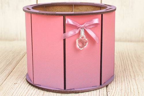 Кашпо подарочное деревянное 13*13*10 см Круг розовый и сиреневый 15113