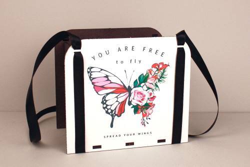 Кашпо подарочное деревянное 15.5*9.5*13 см Сумочка бабочка 15276