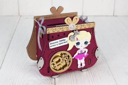 Кашпо подарочное деревянное 16.5*9.5*14.5 см Сумочка с куклой 15430