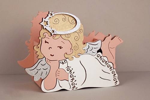 Кашпо подарочное деревянное 16*7.5*12.5 см Ангелочек 15286