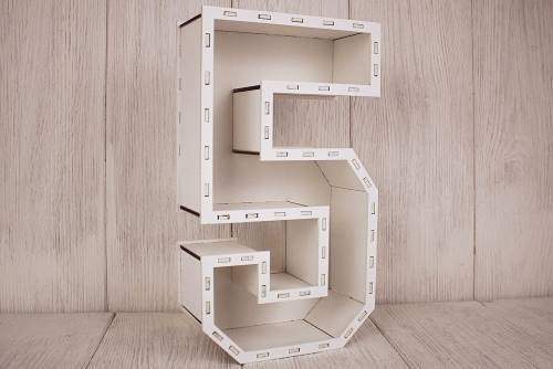 Кашпо подарочное деревянное 17*30*8 см Цифра 5 белая 15105