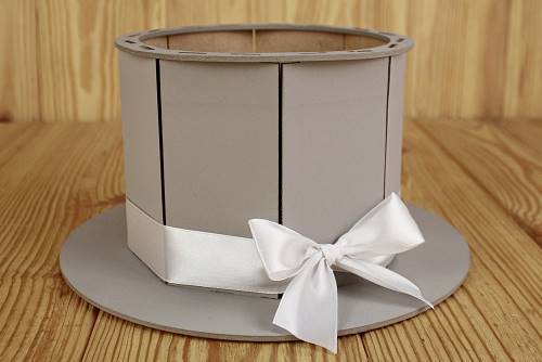 Кашпо подарочное деревянное 24.5*24.5*12.5 см Шляпа серый 150791