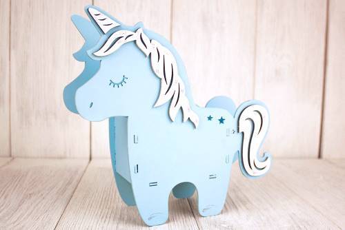 Кашпо подарочное деревянное 27.2*8.5*26.5 см Единорог голубой/белый 150657