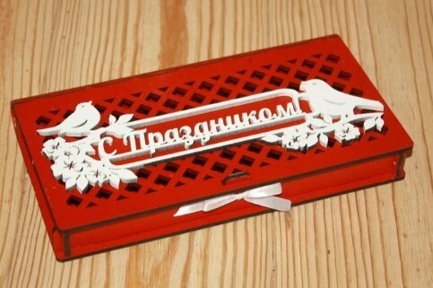 Купюрница из дерева 19*10.5*2.2 см С праздником! с птицами 154639