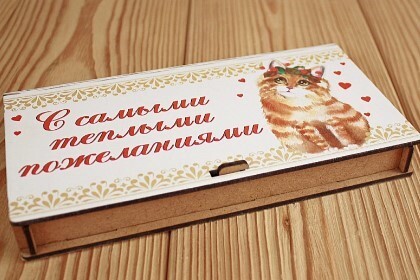 Купюрница из дерева 19*10.5*2.8 см С самыми теплыми пожеланиями! с киской 154640