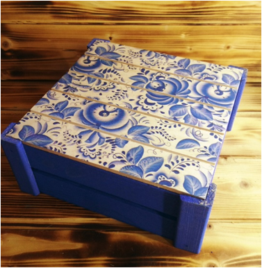 Подарочная коробка реечная 20*20*9 см Гжель 23064