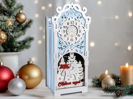 Подарочное кашпо деревянное 12*10*27 см Кормушка с ёлочной игрушкой "Лошадка 2026" 154669