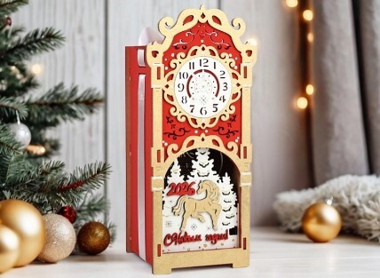 Подарочное кашпо деревянное 12*10*27 см Кормушка с ёлочной игрушкой "Лошадка 2026" 154670