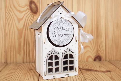 Подарочное кашпо деревянное 13.5*11.5*21 см С днем рождения белый 15226