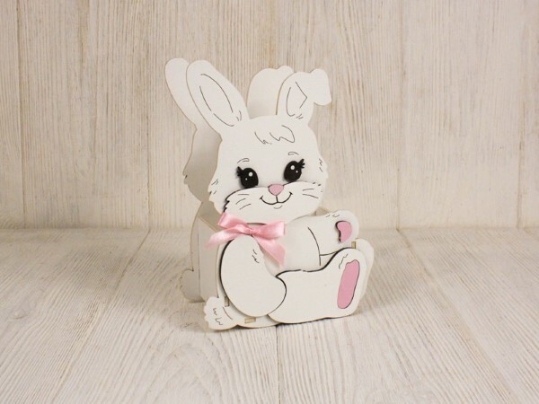 Подарочное кашпо деревянное 13.5*7*19.5 см Зайка с бантом белый 154031
