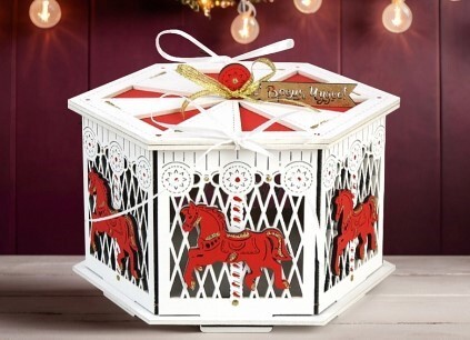 Подарочное кашпо деревянное 19*16*13 см Карусель белый-красный 154663