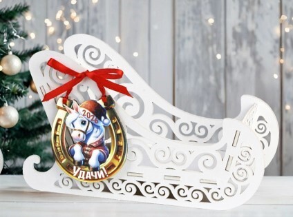 Подарочное кашпо деревянное 23*10*14 см Сани с магнитом "Подкова 154665