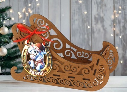 Подарочное кашпо деревянное 23*10*14 см Сани с магнитом "Подкова 154666