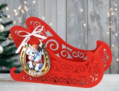 Подарочное кашпо деревянное 23*10*14 см Сани с магнитом "Подкова 154667