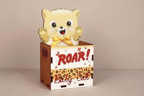 Подарочное кашпо деревянное 8*6.5*14 см Baby Cat с котёнком 15292