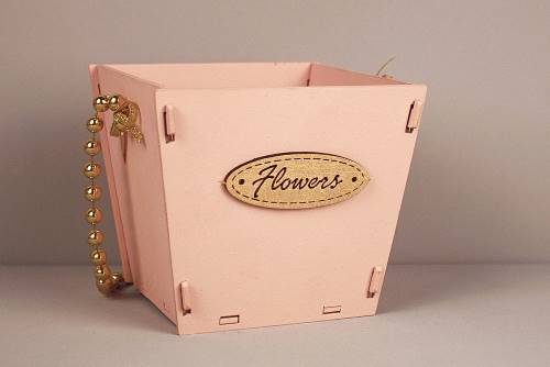 Подарочное кашпо деревянное конусом 12*12*10.5 см Flowers пудровый 153612