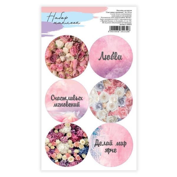 Наклейки для цветов и подарков «Счастливых мгновений» 16*9.5 см 577229 ЦЕНА ЗА ЛИСТ