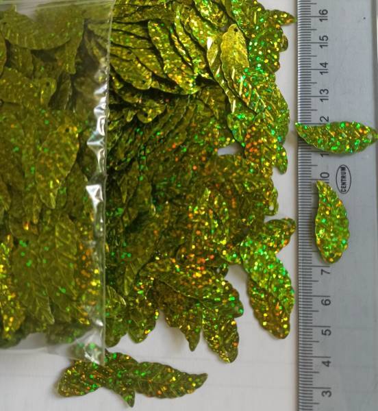 Пайетки Листок 25*14 мм 500 г Светло-зеленый 17014 купить оптом и в розницу предлагает интернет-магазин Радуга 52. Оптовая цена действует при заказе от 3 000 ₽.