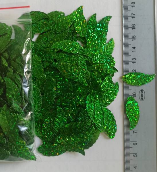 Пайетки Листок 25*14 мм 500 г Зеленый 17012 купить оптом и в розницу предлагает интернет-магазин Радуга 52. Оптовая цена действует при заказе от 3 000 ₽.
