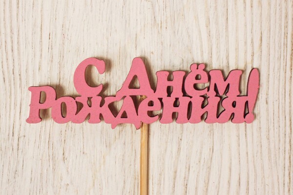 Топпер деревянный 10*25 см "С Днем рождения" розовый 153090