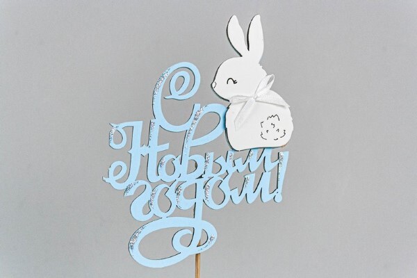 Топпер деревянный 10*30 см "С Новым годом!" с зайкой бело-голубой 153125