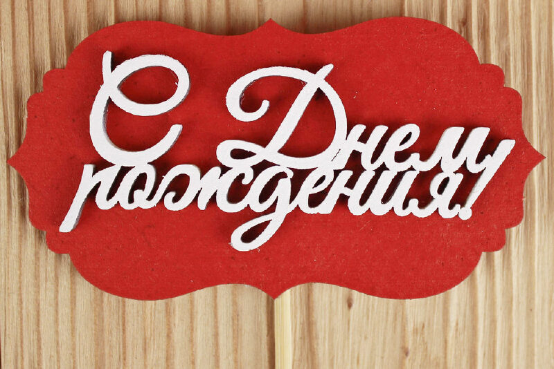 Топпер деревянный 10.5*27 см "С Днём рождения" красный 151422