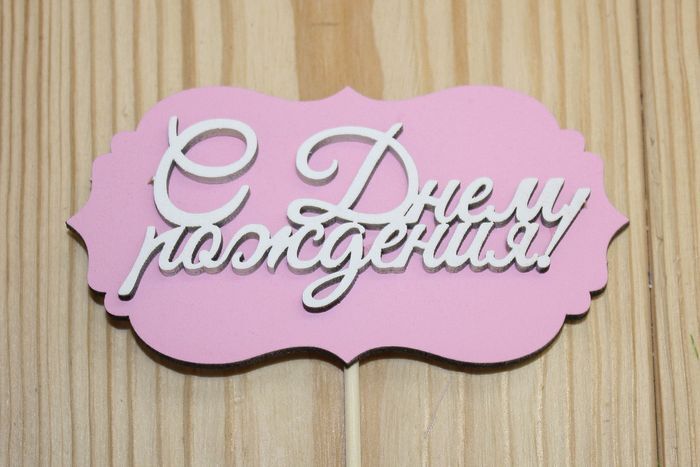 Топпер деревянный 10.5*27 см "С Днём рождения" розовый 151421