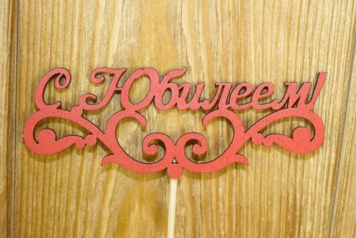 Топпер деревянный 12*27 см "С Юбилеем" с вензелем красный 152421