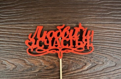 Топпер деревянный 12*28 см "Любви и счастья" с вензелем красный 154782