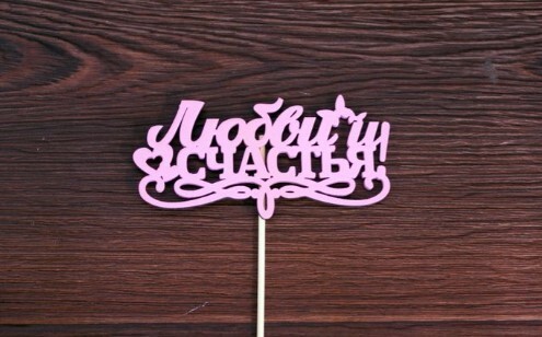 Топпер деревянный 12*28 см "Любви и счастья" с вензелем розовый 154783