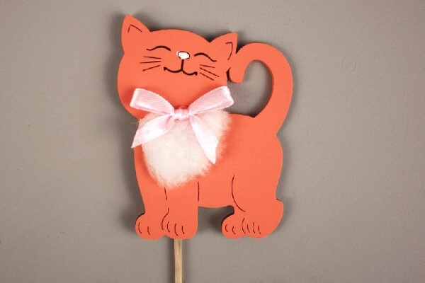 Топпер деревянный 7*9 см Котик оранжево-розовый 153167