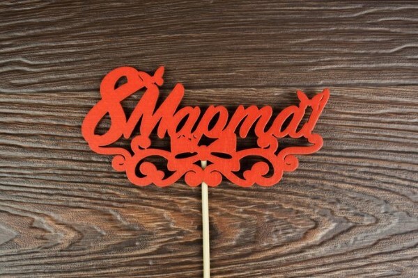 Топпер деревянный "8 марта" с вензелем 13*28 см Красный 15502