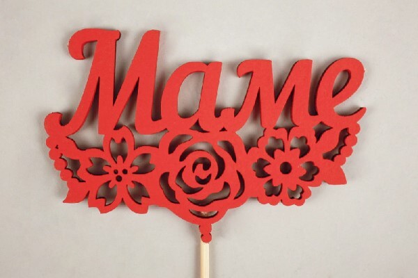 Топпер деревянный "Маме" с цветами 10.5*30 см Красный 15509