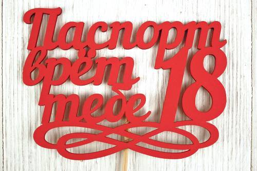 Топпер деревянный "Паспорт врёт, тебе 18" 11.5*30 см Красный 152533 купить оптом и в розницу предлагает интернет-магазин Радуга 52. Оптовая цена действует при заказе от 3 000 ₽.