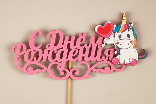 Топпер деревянный "С Днём Рождения!" с единорогом 15*29 см Розовый 15279 купить оптом и в розницу предлагает интернет-магазин Радуга 52. Оптовая цена действует при заказе от 3 000 ₽.