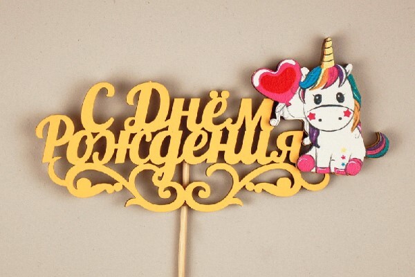 Топпер деревянный "С Днём Рождения!" с единорогом 15*29 см Желтый 153155 купить оптом и в розницу предлагает интернет-магазин Радуга 52. Оптовая цена действует при заказе от 3 000 ₽.