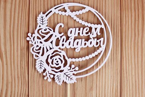 Топпер деревянный "С днём Свадьбы" в круге 11.2*30 см Белый 152442 купить оптом и в розницу предлагает интернет-магазин Радуга 52. Оптовая цена действует при заказе от 3 000 ₽.