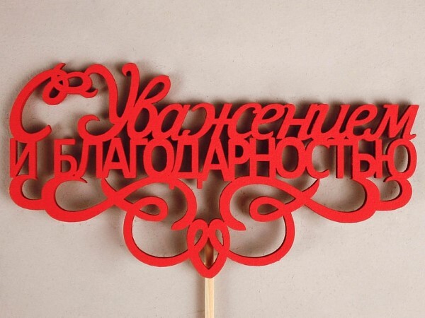 Топпер деревянный "С уважением и благодарностью" 13*30 см Красный 152981 купить оптом и в розницу предлагает интернет-магазин Радуга 52. Оптовая цена действует при заказе от 3 000 ₽.