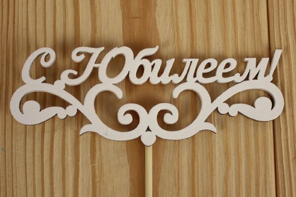 Топпер деревянный "С Юбилеем" с вензелем 12*27 см Белый 15495 купить оптом и в розницу предлагает интернет-магазин Радуга 52. Оптовая цена действует при заказе от 3 000 ₽.