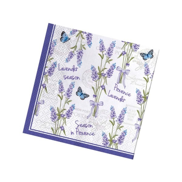 Салфетки бумажные 33*33 см Лаванда и бабочки 3 слоя 20 листов 902149