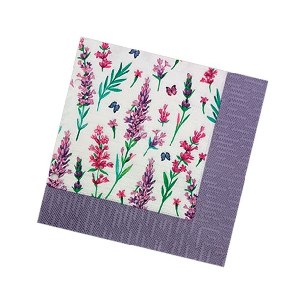 Салфетки бумажные 33*33 см Скатерть с лавандой 3 слоя 20 листов 900258