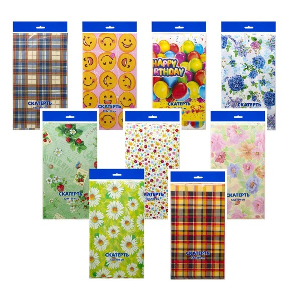 Скатерть 120*180 см ПВД 35 мкм МИКС 900391 купить оптом и в розницу предлагает интернет-магазин Радуга 52. Оптовая цена действует при заказе от 3 000 ₽.